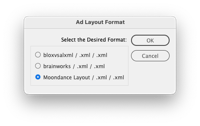 3. When the following dialog appears, select the radio button for the Ad Layout Format with the Edition and Layout file formats you enabled in the Configuration step above.Â