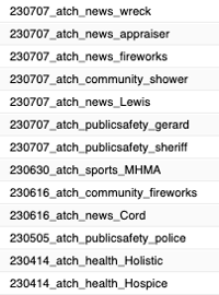 If you don't know your slugging convention, now is the time to figure it out. This is typically decided before the first day of training when you installed BLOX Total CMS. There are several samples above. Our recommendation has always been to to start with the year, month, and date because it facilitates sorting. If you know your slugging convention, determine what your site's Default Slugging code is. For the sake of demonstration, lets assume that the naming for a mythical site is a 4 digit year, a 2 digit month, and a two digit date of the month followed by a single hyphen and then the publication code. For that example, the Default Slugging would be YYYYMMDD-%%pub%% where `%%pub%%` represents a lowercase version of the publication code for each publication.Â