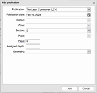 To Actively Budget to a specific Page of an Edition, use the `Publications` accordion in the `Print` tab of the Asset Manager. Assign a Publication, a Publication Date, a Section, and finally a Page Number.Â