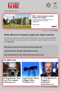 Our resizeable paid recommendations widget suggests three articles of interest to the recipient, and adjusts to fit all desktop and mobile devices.
