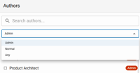 The Author selection tool now supports filtering by account type — Admins (default), Normal, or Any — and displays account type chips along with first name, last name, and screen name for each user. (CMSADMIN-2010) 📷