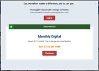 We've found that up to 95% of paywall subscription sales are digital only. By promoting just your best digital offer, the value you bring, and customizing the message, you'll grow your digital subscriber base quicker.