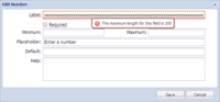 Summary:Â Added a 200-character limit to field names to prevent improper saving. Change:Â If you have a field name over 200 characters, you will receive the notification in the screenshot.