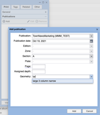 Another example of Geometry being assigned to an Article Asset from the Print Publications tab of the asset editor.Â