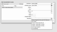 When selecting a Geometry Item, there should be a list of all those Design Element Snippets that have been exported using the `Export to Page Tracker` option for the designated publication code. This menu is available in both the Asset Editor's Print Publications accordion as well as here in the `Batch add publications to assets`. The menu allows for some filtering. For example, type a 3 in the field to limit the display to all Geometry Items whose names begin with a 3. Â